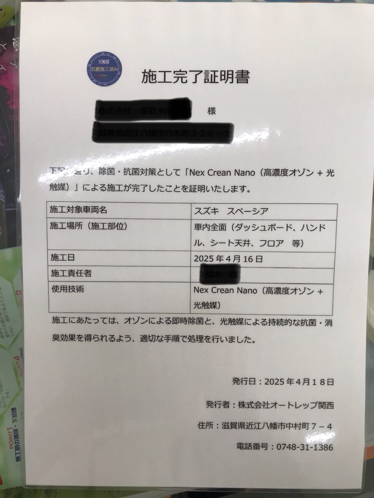 スペーシア人気ですね~。こちらの車は光触媒施工済みのお車です。